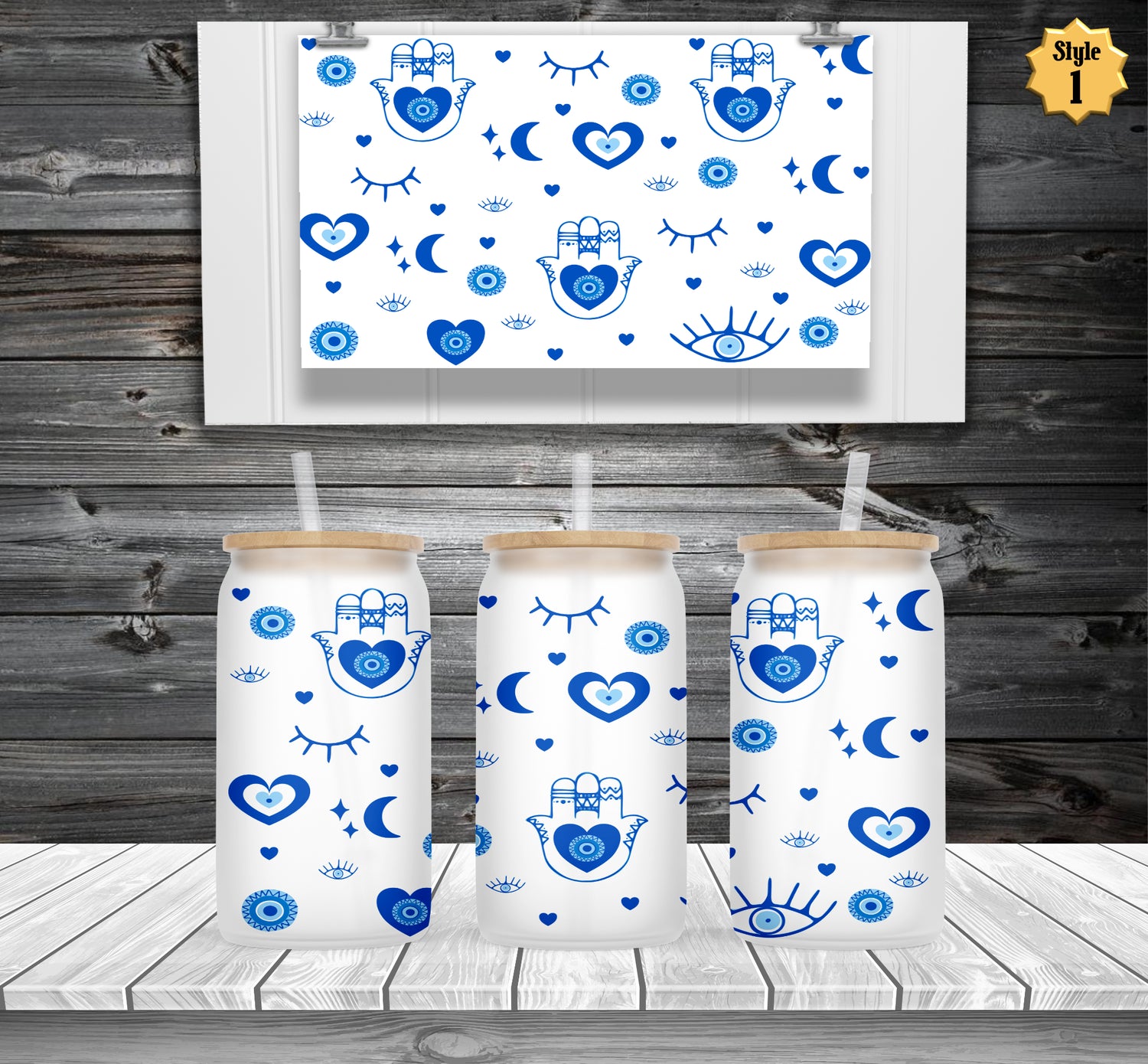 Frosted 16oz glass beer can with bamboo lid, straw included.